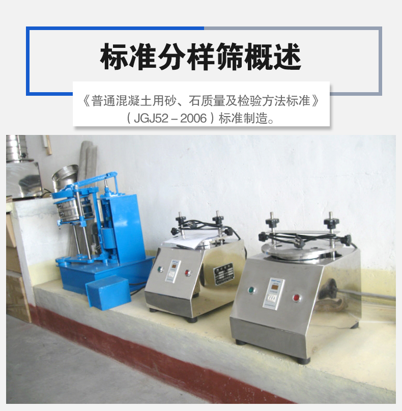 產品簡介:標準分樣篩介紹 供應標準分樣篩供應分樣篩是按《普通混凝土用砂、石質量及檢驗方法標準》(JGJ52-2006),對顆粒性材料進行篩分試驗用的符合標準形狀...