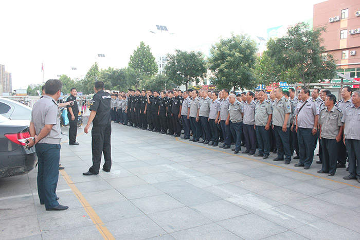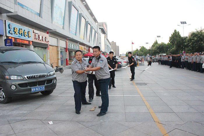 7月27日上午8時30分,人防一大隊接客戶單位天衢路中國銀行求助電話后,立即通知大隊應急搶險分隊30名保安隊員在第一時間趕赴現場。大隊長王新剛,一中隊、三中隊中隊長李明、孫輝國在下達集結指令的同時也快速抵達。